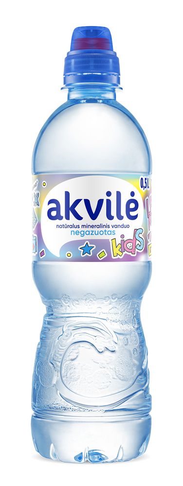 Looduslik mineraalvesi Akvile Kids. Gaseerimata. pH8 (kergelt leeliseline). Mugav spordikork, pudel tehtud paksemaks, et lastel oleks seda mugavam hoida. Akvile on 100% loooduslik aluseline vesi, üks vähestest maailmas, milles ei ole üldse nitraate ega nitriite. Vesi on villitud pudelitesse otse tootmiskohas, ei mingeid lisandeid, ioniseerimist, ega puhastusprotsesse. Vesi filtreerub läbi kivi ja liivakihtide Dzukija rahvuspargi territooriumil üle 15 aasta ning alles siis muutub see vesi Akvile looduslikuks mineraalveeks.