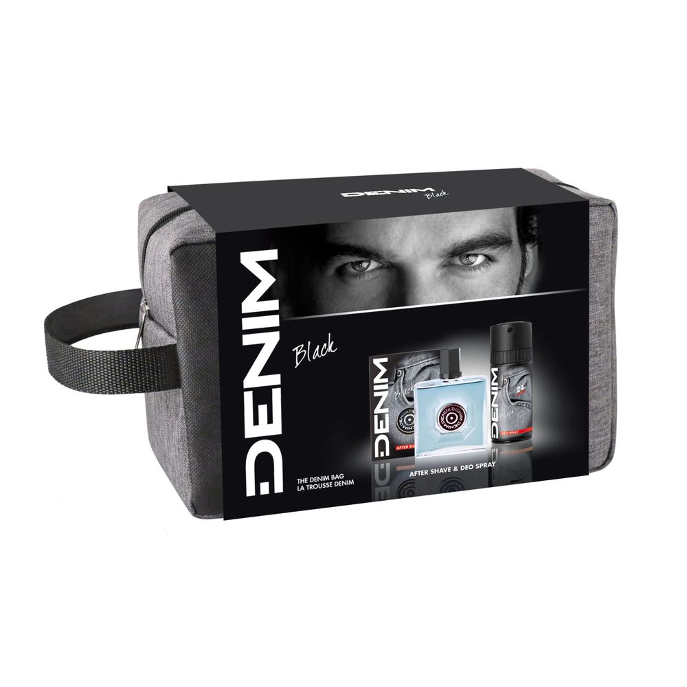 Silmapaistev, unikaalne, värskelt sensatsiooniline Denimi deodorant ja näovesi pakendatud mugavasse kosmeetikakotti.