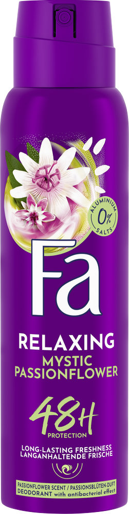 Avasta Fa Mystic Moments deodorandi lummav aroom! Nahasobralik tootevalem tagab 48h kaitse kehalohnade vastu ega jata valgeid laike. Enne tarvitamist raputa hoolikalt. Pihustades hoia pudelit pustiasendis, kaenlaalustest 15 cm kaugusel. Pihusta nahale vaikeste pahvakutena.