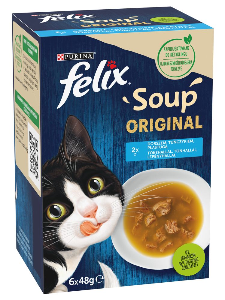 Kiisueine FELIX Soup Original Kalavalik kastmes (tursk, tuunikala, atlandi merilest)6x48g