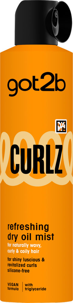 Tähista oma lokke! Kõik lokitüübid on oodatud! Soovid siidiseid, pehmeid ja sädelevaid lokke? got2b Curlz värskendav Dry Oil sprei võitleb kahususega, säilitab niiskust ja annab juustele kauni läike! Ideaalne loomulikult lainelistele, lokkis ja krussis lokkidega juustele. Silikoonivaba ja vegan* koostis. Sisaldab triglütseriidi.