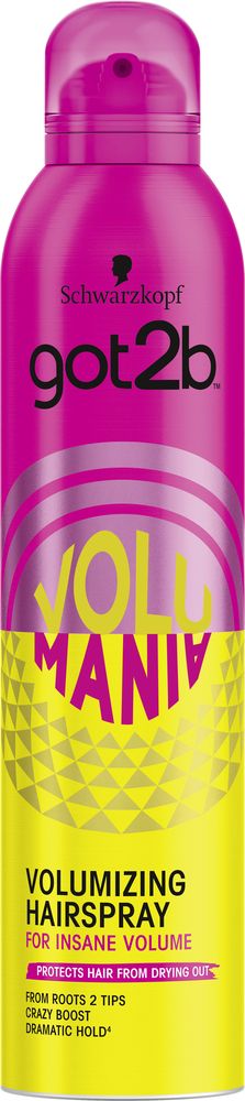 Tee oma juuksed mega kohevaks! Got2b Volumizing juukselakk lisab juustele kohevust kuurtest otsteni. Fikseerib soengu kuni 24h, muutmata neid raskeks. Niisutatud juuksetunnetus ja hullumeelselt tugev püsivus. Vegan tootevalm*. Alumiiniumpudel on ümbertöödeldav.**