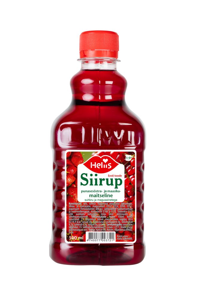 Vesi, suhkur, happesuse regulaator sidrunhape, mahlakontsentraat, lõhna ja maitseaine, magusained: E952, E954, E950, E951, säilitusaine kaaliumsorbaat, toiduvärv E122.