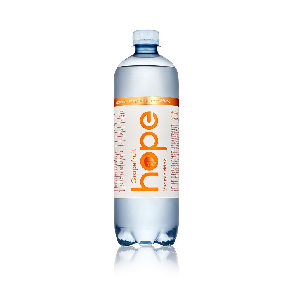 Hope greibimaitseline vitamiinijook on rikastatud nii magneesiumi kui ka kofeiiniga, pakkudes täiuslikku energialaengut, mis hoiab sind ärkvel ja valmis igaks väljakutseks. Hope vitamiinijook ühendab erinevad B-rühma vitamiinid, C-vitamiini ja magneesiumi, pakkudes sulle igapäevaseks eluks vajalikku värskust ja tuge. Sisaldab kofeiini! Tarbida mõõdukalt! Maksimaalne lubatud kofeiini kogus päevas on 300 mg. Näiteks tassis (ca 170 ml) kohvis sisaldub umbes 100 mg kofeiini. 1 pudelis greibimaitselises Hope vitamiinijoogis (750ml) on 100 mg kofeiini.