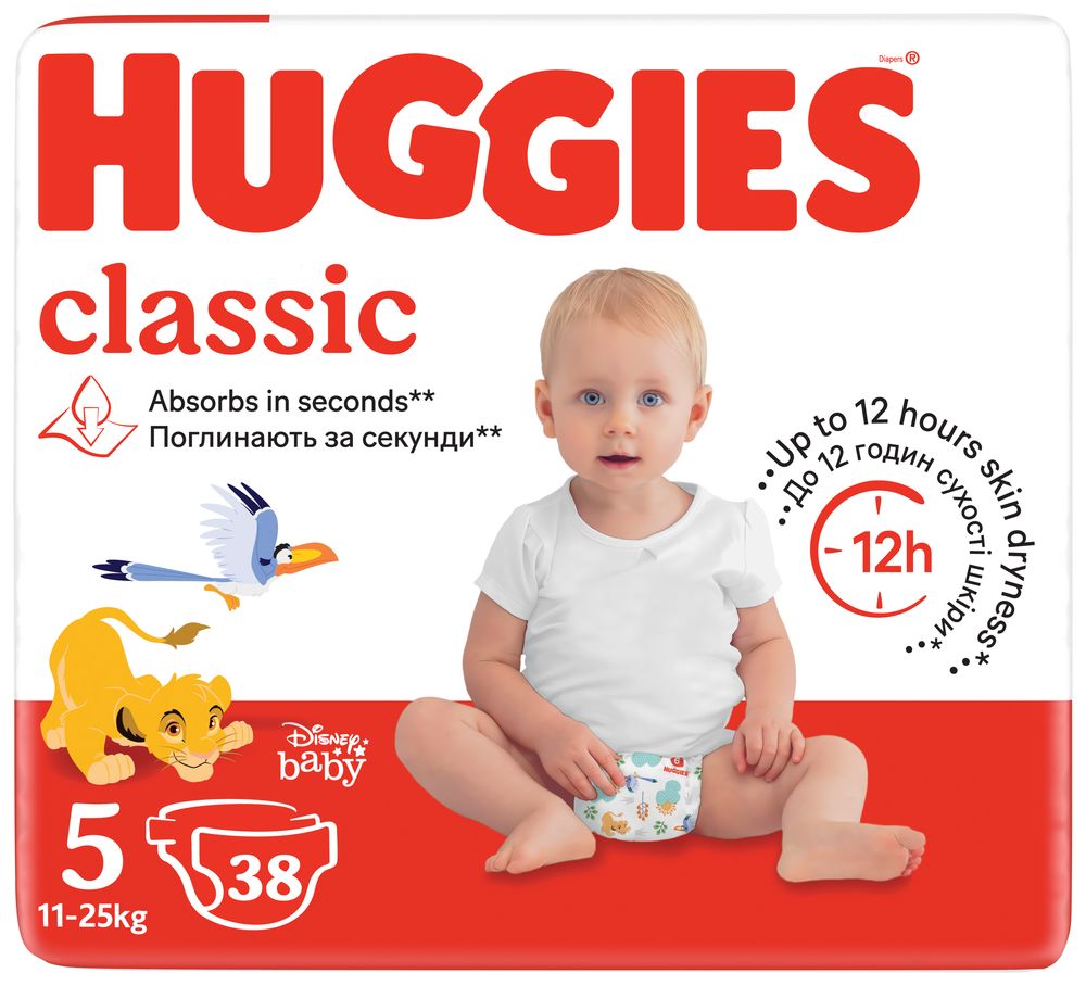 Huggies® Classic teipmähkmed sobivad nii poistele kui tüdrukutele ning on toodetud kasutades 360° lekke kaitse tehnoloogiat. Lõhnavad, hingavad, pehmed materjalid ning kiiresti imav kiht tagavad õhuringluse ja puhta naha, pehmed venivad ribad jalgade ümber pakuvad lisakaitset lekete vastu, korduvkasutatavad kinnitused ja pehme vöökoht aitavad kohandada mähkme kõhukese suurusega, lisakson mähkmetel vahvad Disney® Lõvikuninga tegelaskujude pildid kõik selleks, et pisike maailmaavastaja tunneks end mugavalt ja pepu püsiks kuiv kuni 12 tundi. Huggies Classic kvaliteet taskukohase hinnaga!