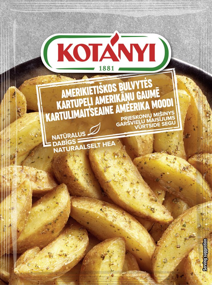 Kartulit Ameerika moodi võib serveerida ribide ja lihapraega. Retsept 1 kg pehmeks keedetud kartuleid, 30 g taimeõli või koorevõid, 1 pakk kartulimaitseainet Ameerika moodi. Kartul korralikult ära pesta ja keeta 10 minutit, seejärel lõigata viiludeks. Või ja kartulimaitseaine korralikult läbi segada. Kartuliviilud laduda pannile ja määrida valmistatud seguga. Küpsetada praeahjus 200 ? juures 25 minutit.