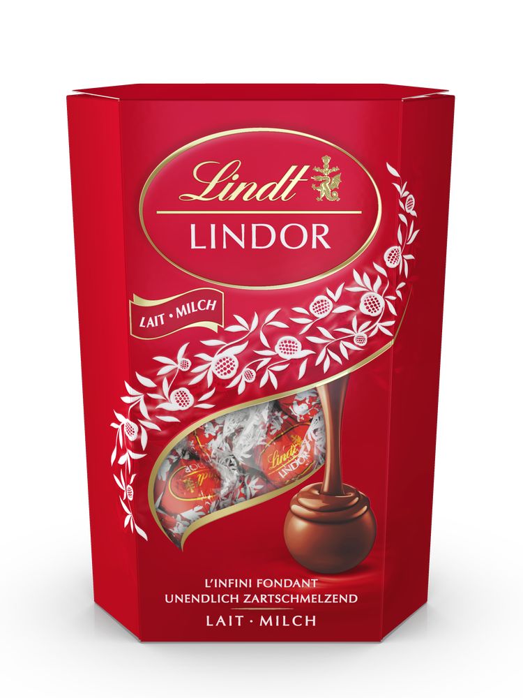 Lindt Lindor piimašokolaadipallid pehme piimašokolaaditäidise ja õhukese Lindt šokolaadist väliskihiga.