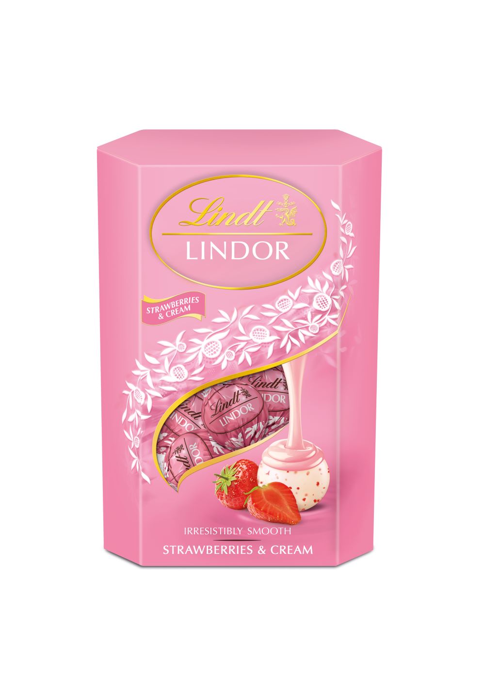 suhkur, kakaovõi, taimsed rasvad (kookospähkel, palmituum), TÄISPIIMAPULBER, LAKTOOS, KOOREPULBER (1,1%), emulgaator (SOJALETSITIIN), maasikapulber (0,2%), looduslik lõhna ja maitseaine, toiduvärv (peet), lõhna ja maitseained. Toode võib sisaldada SARAPUUPÄHKLEID ja muid PÄHKLEID.