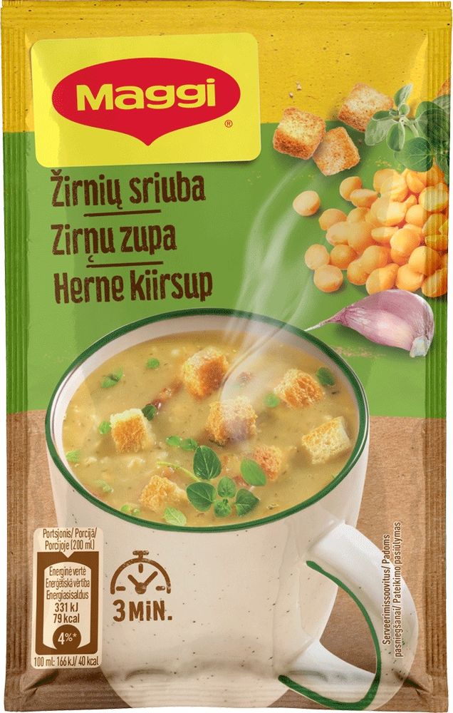 Herne kiirsupp krutoonidega sinu tassis vaid 3 minutiga, olenemata sellest, kus viibid. Armastatud Maggi lahustuvad supid valmistatud vaid tuttavatest ning järele proovitud koostisosadest, et saaksid nautida ideaalset maitset! Avasta veelgi enam maitseseiklusi koos Maggi supiga .