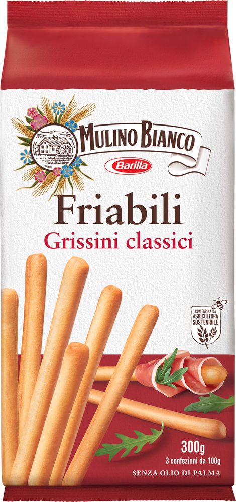Klassikalised grissiinid - traditsiooniline Vahemere suupiste, valmistatud pehmest nisujahust. Ideaalne lisand snäkivaagnale salaami, prosciutto, juustude kõrvale. Palmiõlivaba.