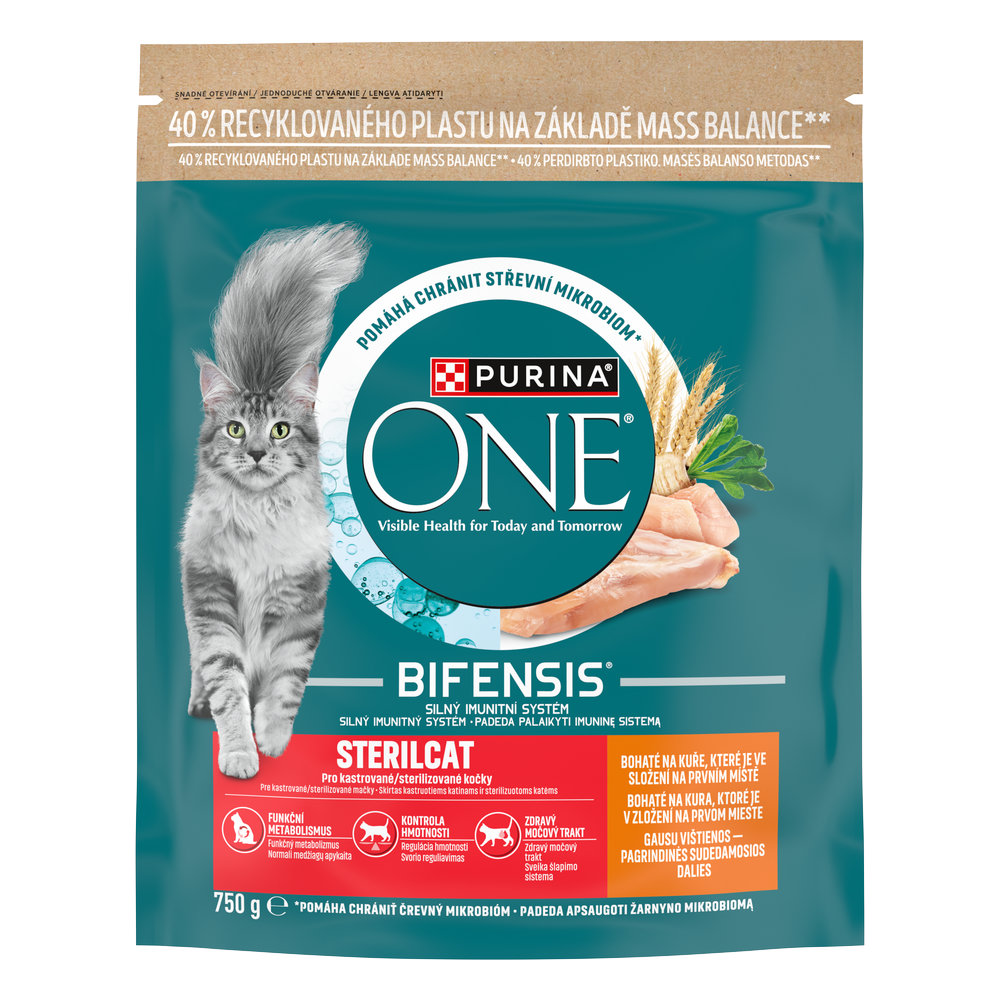 PURINA ONE® BIFENSIS® Sterilcat on spetsiaalselt loodud kastreeritud või steriliseeritud kassidele normaalse ainevahetuse säilitamiseks.