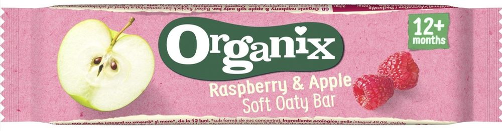 Maheda õuna ja vaarika maitsega kaerahelbebaatoon, mis sobib suurepäraselt vahepalaks.