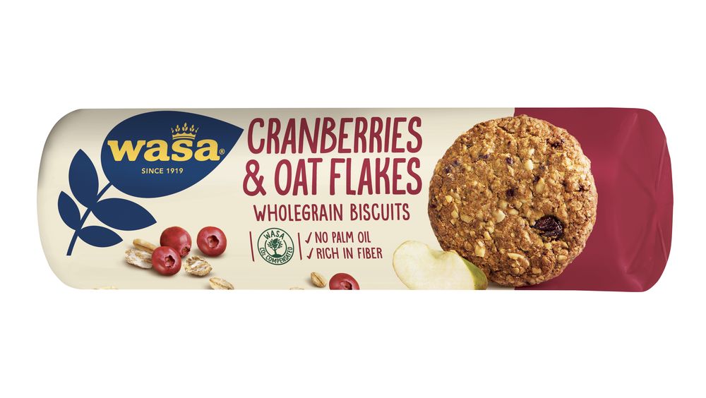 Wasa jõhvikate ja kaerahelvestega küpsis on valmistatud täisteranisujahust, jõhvikatest ja kaerahelvestest ning sisaldab rohkelt täistera ja kiudaineid. Palmiõlivaba