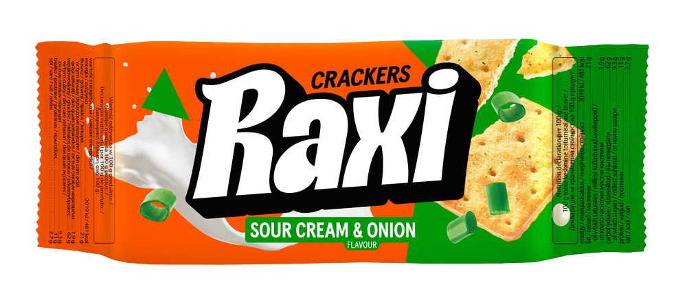 NISUJAHU, rapsiõli, glükoosi-fruktoosisiirup, ODRALINNASEekstrakt, koore- ja sibulamaitseline segu 2,5 % (maltodekstriin, suhkur, glükoosisiirup, lõhna- ja maitseained, sibulapulber 7,5 %, peenestatud kuivatatud petersell, lõhna- ja maitsetugevdajad: naatriumvesinikglutamaat, dinaatrium-5-inosinaat; happesuse regulaatorid: piimahape, kaltsiumlaktaat, sidrunhape; paakumisvastane aine amorfne ränidioksiid, hapukoorepulber (PIIMAST) 1 %, toiduvärvid: kurkumiin, paprikaekstrakt), keedusool, kergitusained: ammooniumkarbonaadid, naatriumkarbonaadid; rosmariini lõhna- ja maitseaine, emulgaator SOJALETSITIIN, jahu töötlemisaine NAATRIUMDISULFIT, pärmiekstrakt. Võib sisaldada sarapuupähkleid, mandleid, maapähkleid ja nende saadusi.