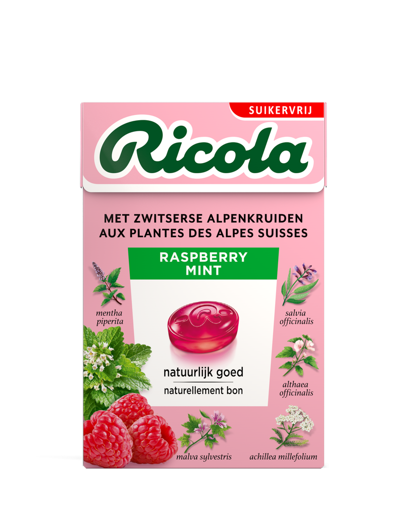 Magusaine (isomalt), happed (sidrunhape, õunhape), kontsentreeritud vaarikamahl, sidrunmelissi ja Ricola ürdisegu ekstraktid, looduslikud lõhna- ja maitseained, kontsentraat (maguskartul, porgand), magusaine (stevioolglükosiidid steeviast), piparmündiõli, mündiõli, mentool.