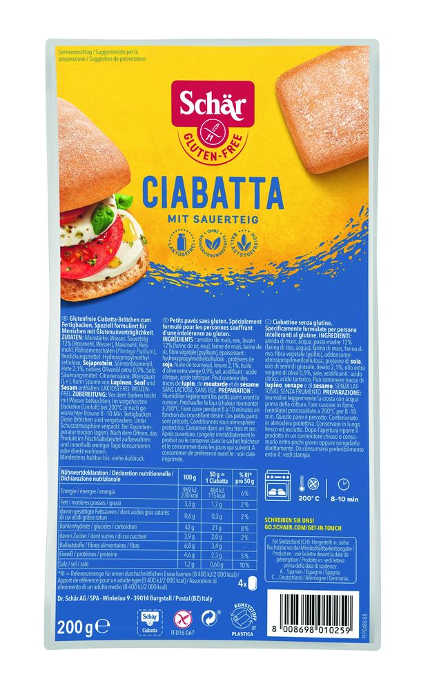 Gluteenivabad ja laktoosivabad Schär Ciabatta kuklid, mis on valmistatud õhulise taigna ja neitsioliiviõliga, on krõbedad ning kohevad
