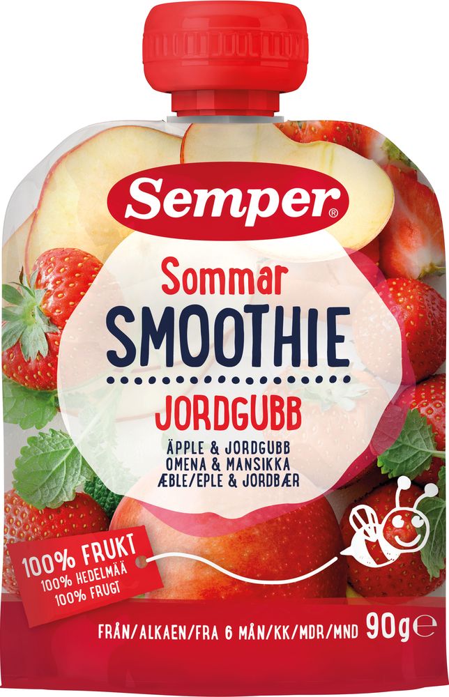 Õuna-maasika smuuti, alates 6. elukuust. Valmistatud 100% puuviljadest, ilma lisatud suhkruta