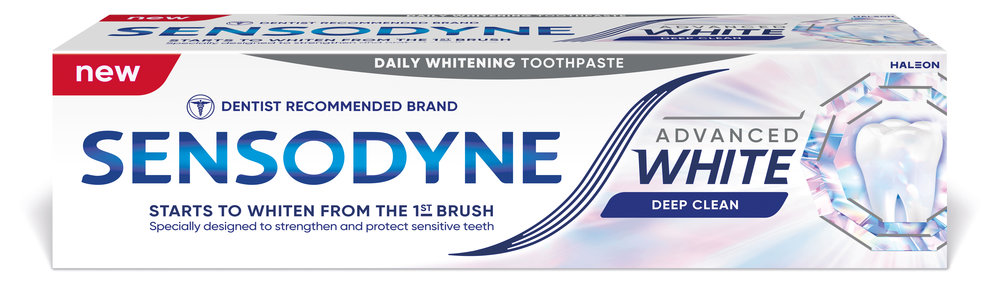 Valgemad hambad ja kaitse tundlikkuse vastu. Sensodyne Advanced White hambapastal on teaduslikult tõestatud koostis, mis valgendab hambaid ja see pakub 24/7 kaitset tundlikkuse vastu*. Ülimadala abrasiivsusega koostis. Kasutades 2 korda päevas, valgendab selle spetsiaalselt loodud, täiustatud valgendav toime hambaid, olles samal ajal õrn emaili suhtes, et tagada tugevad, terved ja valged hambad. Sensodyne Advanced White on fluoriidiga hambapasta, mida võib kasutada iga päev ja mis pakub igapäevast hooldust tundlikele hammastele. HAMBAPASTA FLUORIIDIGA. Harjake hambaid 2-3 korda päevas, vältige alla neelamist. Mitte kasutada alla 12-aastastel lastel, välja arvatud hambaarsti soovitusel. Ärrituse tekkimisel lõpetage kasutamine. Tundlikud hambad võivad viidata alusprobleemile, mis vajab hambaarsti kiiret abi. Karbi otsad on kinni kleebitud. Ärge kasutage, kui karbi otsad on lahti. Parim enne: vt pakendi otsalt. Sisaldab 0,3152% w/w naatriumfluoriidi (1450 ppm fluoriidi). Kontakttelefon: +372 6346470. *2 korda päevas harjamisel