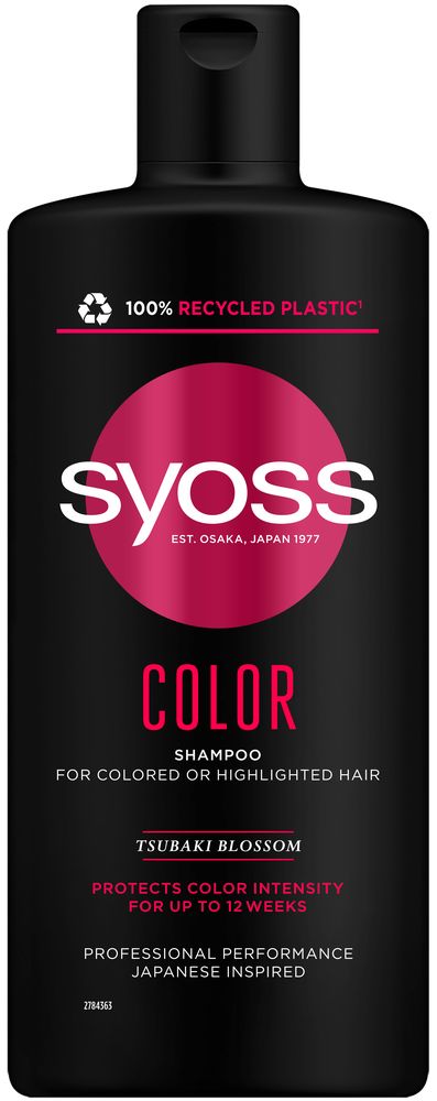 Jaapanist inspireeritud, tsubaki õitega Syoss Color shampoo värvitud või triibutatud juustele. Vegan.
