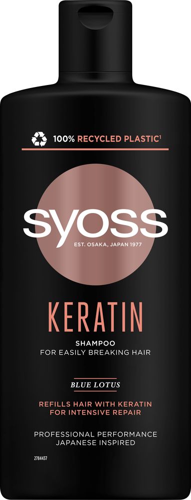 Jaapanist inspireeritud, sinise lootoslillega Syoss Keratin šampoon kergesti murduvatele juustele.
