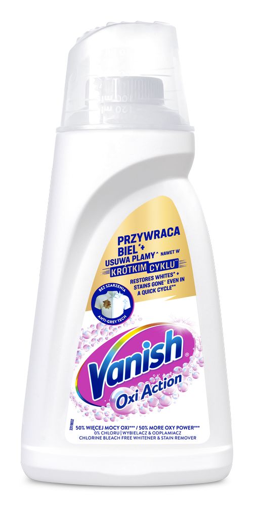 Vanish Oxi Action White plekieemaldusvedelik valgele pesule.