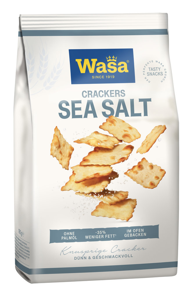 Rohkem naudingut krõbistamisel. Wasa Delicate Crackers Sea Salt on krõbedaks kaaslaseks teie lauale. Ahjus küpsetatud krõpsud on õhukesed, kuid tugevad hammustamisel ning sobivad suurepäraselt paljude toitudega, nagu juust, dipikastmed või salaami.