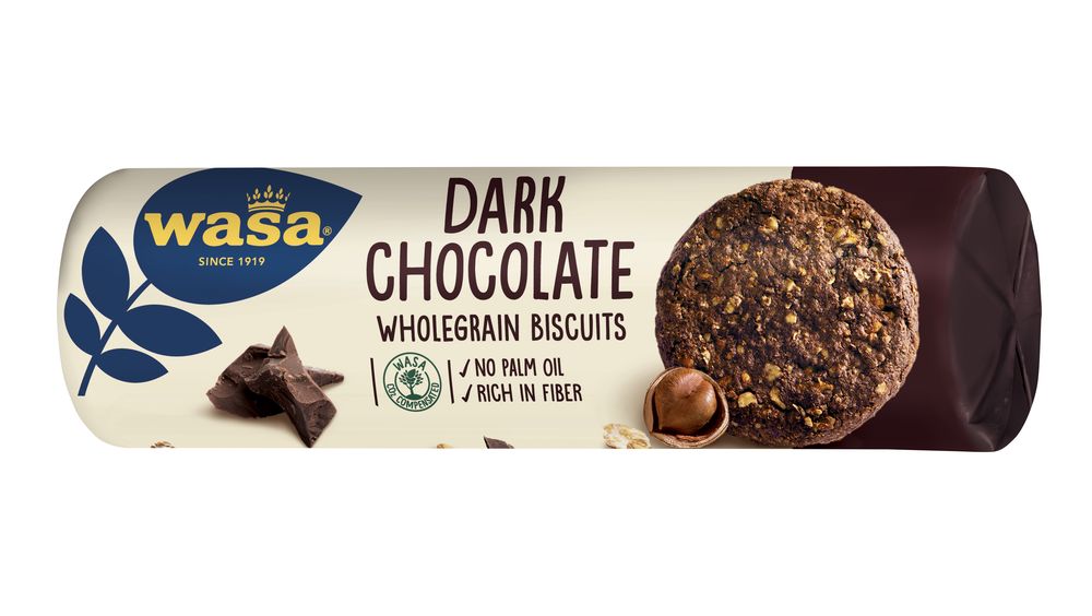 WASA täisteravilja küpsised tumeda šokolaadiga on krõbedad täisteraküpsised, mis on kaetud rikkaliku tumeda šokolaadiga. Hea valik vahepalaks või kohvi kõrvale, ühendades täisteraviljade täidlase maitse ja šokolaadi mõnusa magususe.