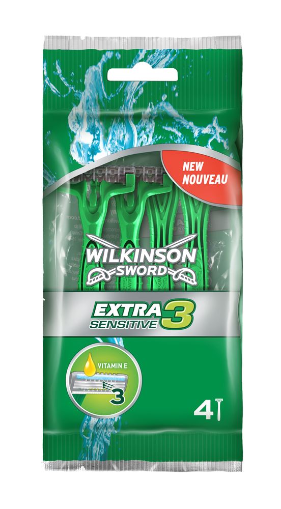 Kolme teraga ühekordne raseerija tundlikule nahale. Pakendis 4 raseerijat.
