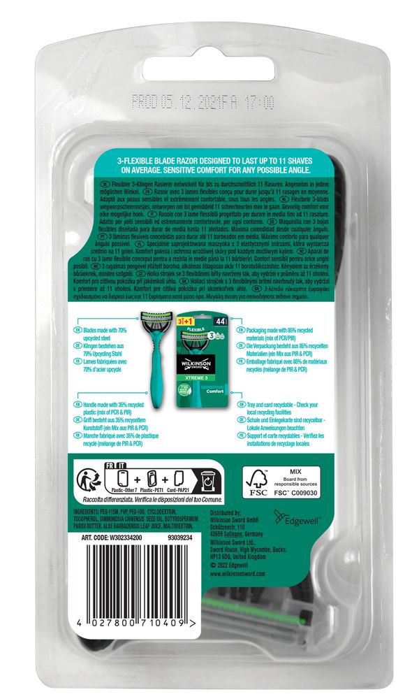 3 pööratavale peale kinnitatud elastset tera sobituvad täiuslikult kehakumerustega ja võimaldavad ülitäpset tulemust. Raseerida saab iga nurga all. Nahka niisutav riba annab raseerimise ajal ja järel meeldiva heaolutunde. Nahka pingutav riba muudab raseerimistulemuse täpseks. Kerge, ergonoomilise kujuga kummikäepide hõlbustab stabiilset ja kindlakäelist raseerimist.