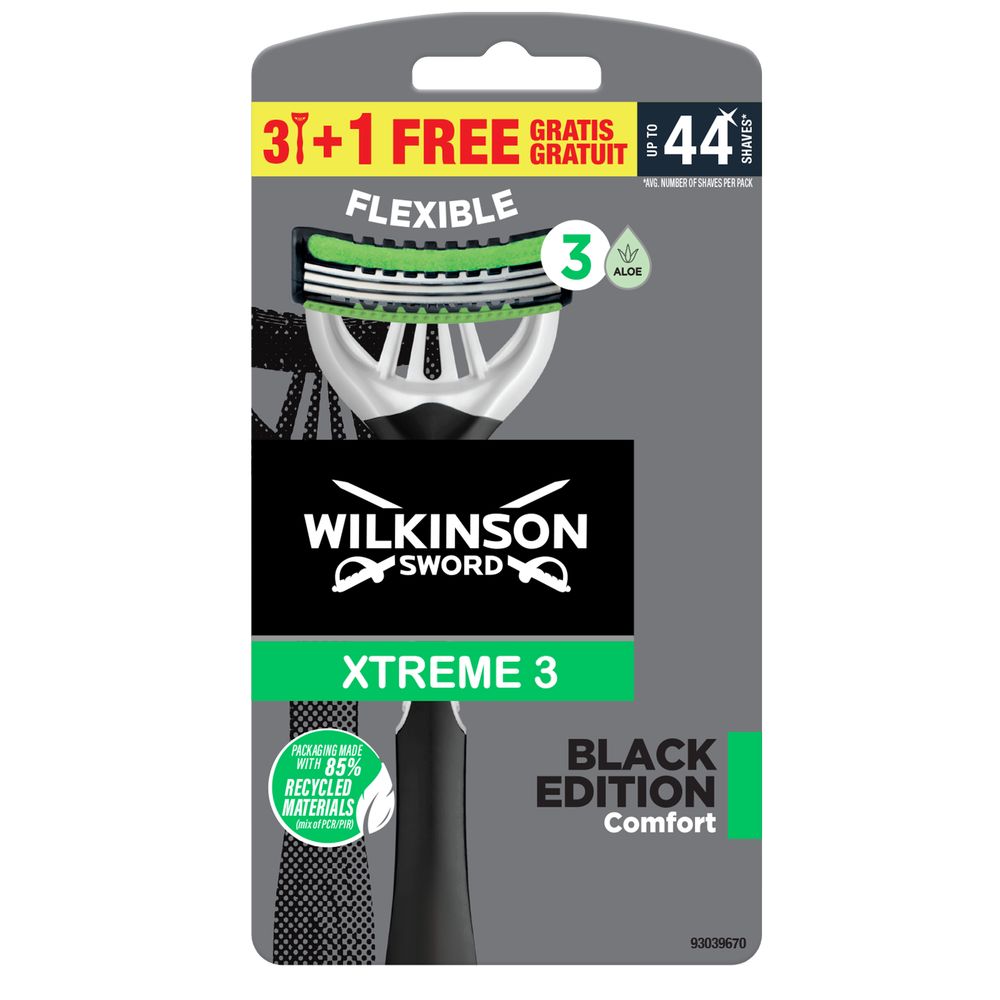 3 painduvat tera, mis kohanevad mis tahes kontuuriga. Aloe Veraga määrderiba. Must käepide, mis on valmistatud 77% ulatuses taaskasutatud plastist (tarbimisjärgselt taaskasutatud plastist)